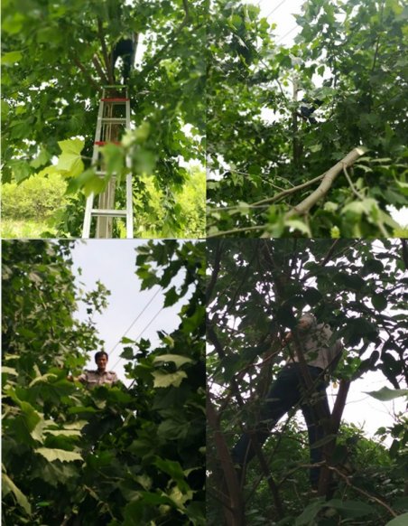 第三水廠展開了水源井區(qū)高壓輸電線路沿線的高壓線樹障的清理工作,2017年6月13日第三水廠組織專業(yè)清理樹障隊伍先后在十八里園區(qū)西小李、夏莊、房莊等8組水源井高壓線路樹障的清理。清理人員冒著高溫爬上樹、對影響高壓線路的樹枝進(jìn)行砍伐,大家辛苦一整天終于把園區(qū)的8組水源井高壓線下的樹障清理干凈。